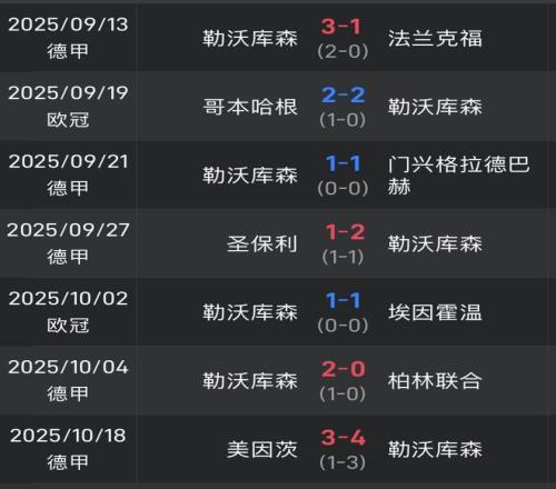 在滕哈赫下课后,勒沃库森在新帅尤尔曼德的带领下,目前已经各项赛事7场不败,期间取得4胜3平,且场均进球超过2粒,进攻端重新找回火力。