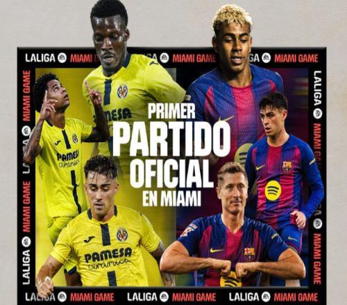 西甲官方:第17轮比利亚雷亚尔VS巴萨在迈阿密举行
